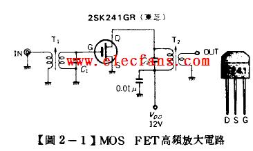 单闸极MOS FET 前置放大器(1)VHF高频放大电路以往都是以双极电晶体(Bipolar Transistor)为主流,但是现在大都以FET取代之。图2-1便是其代表性电路,2SK241(东芝)系VHF用的FET,功率增益可达28dB(@100MHz),是最适於VHF接收器的高频放大级使用的。由於闸极的动作点是零偏压(Zero Bias),所以电路的结构相当简单,电路的全部元件共有六个,配合表2-1所示之电感及电容就能适用於各种频率的高频放大电路。泄极电流为9mA,在电源电压为6~12V之范围内,泄极电流都保持一定。
