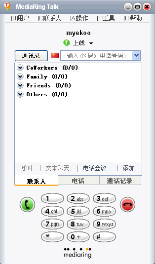 好了,一切ok,打开软件输入用户名、密码,选中下面的三个复选框(表示记住用户名、记住密码、自动登陆),登陆之后在phonebook右面的栏框中输入上面格式的电话号码,ok,enjoy it!