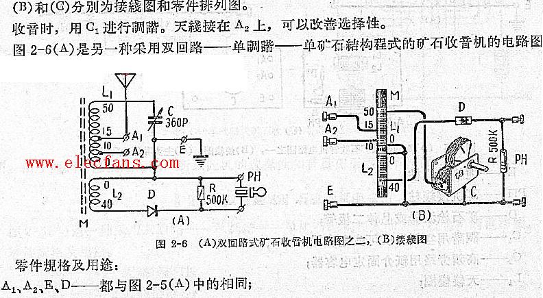 压电式耳机矿石收音机电路,收音时,用C2进行调谐,天线接在A2上,可以改善选择性.
