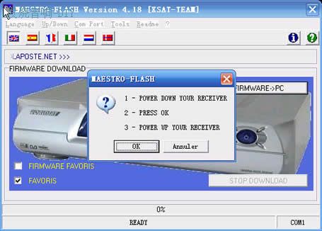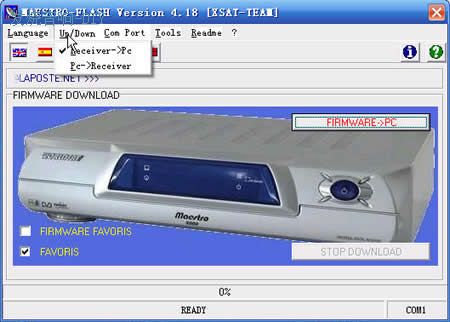 1.下载软件,串口通讯软件MaestroFlash.exe V2正版卡的英文双v系统 4X0法国电信VIACCESS+中文版 4x0用allcam4.62版系统软件 4x0用v+i支持中文菜单支持v2.5系统软件 v2+conax系统软件 4x0用v2+conax系统软件 4x0用单Viaccess系统软件 410/420/430中文2.5V系统软件 430xpV+I 3.0版 多4*0机刷V+M 雷霆4*0 CONAX系统软件