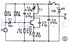 图1所示电路可以将音频信号以调频(FM)的方式传送到异地。 图中,VT1、R2、R3、C2、C3、L1、Cx组成谐振频率在88MHz~110MHz之间的电容三点式调频振荡电路。话筒B将声音信号转换成电信号后经过耦合电容C1送入三极管VT1的基极。此时,VT1的基极电压将随着音频信号的变化而变化,于是VT1的集电结电容也相应变化,引起振荡器的振荡频率随之变化,达到调频的目的。VT1集电极负载L1、Cx、C3等调谐回路决定了高频振荡器的振荡频率(即发射频率),由于C3、L1的参数为固定值,所以电容Cx为振荡频率调整电容,调整电容Cx可以改变该发射器的发射频率,当Cx的电容量为12.5pF时,发射频率约为108MHz。 包含有声音信号的调频信号由VT1的集电极输出,并由发射天线向空中发射。天线接在VT1的集电极,长度约为690mm时发射效果最佳。 L1的电感量为0.17μH,如果买不到成品电感,也可以自己绕制。绕制电感的电感量与线圈骨架的直径、长度以及匝数有关,如图2所示。图中,r表示骨架的半径(单位为mm),x表示线圈成型后的长度(单位为mm),n表示线圈的匝数,电感量为n2×r2/(228.6r+254x)(μH)。根据以上方法,电感L1用φ0.1mm的漆包线在直径为6.7mm的圆形木棒上绕5~6匝,然后脱胎并将线圈长度拉至6.4mm即可。 |