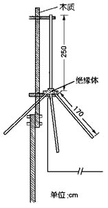 该天线工作方式为全向垂直极化,工作频率30兆或150兆;输入阻抗50~75欧,驻波比V.S.W.R<1.3,天线总长(包括天线+馈线)共20米。