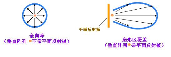 平面反射板放在阵列的一边构成扇形区覆盖天线。下面的水平面方向图说明了反射面的作用--反射面把功率反射到单侧方向,提高了增益。 天线的基本知识全向阵 (垂直阵列 不带平面反射板)