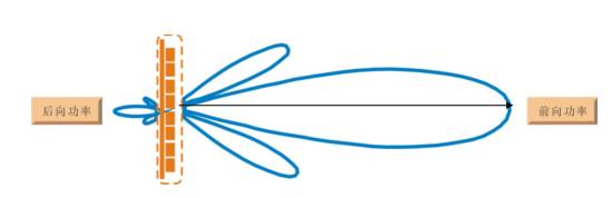 方向图中,前后瓣最大值之比称为前后比,记为 F / B 。前后比越大,天线的后向辐射(或接收)越小。前后比F / B 的计算十分简单-------