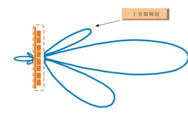 对于基站天线,人们常常要求它的垂直面(即俯仰面)方向图中,主瓣上方第一旁瓣尽可能弱一些。这就是所谓的上旁瓣抑制 。基站的服务对象是地面上的移动电话用户,指向天空的辐射是毫无意义的。