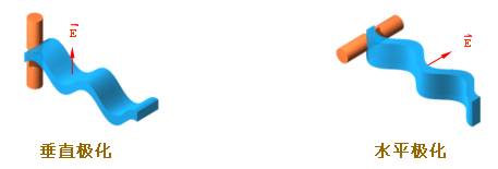 天线向周围空间辐射电磁波。电磁波由电场和磁场构成。人们规定:电场的方向就是天线极化方向。一般使用的天线为单极化的。下图示出了两种基本的单极化的情况:垂直极化---是最常用的;水平极化---也是要被用到的。
