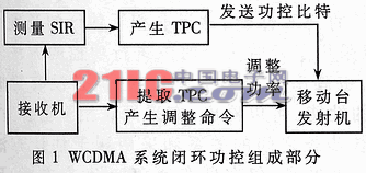 WCDMA系统同时采用了反向开环、闭环、外环功控技术和前向闭环、外环功控技术。鉴于反向闭环功控的重要性和篇幅所限,本文将主要针对反向闭环功控进行讨论,后面的仿真曲线也是基于反向闭环功控做出的。WCDMA系统闭环轼控主要由四部分构成:SIR估计、功控比特(TPC)产生、本地TPC判决和功率高速单元等,如图1所示。
