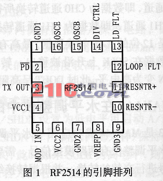 RF2514各引脚的排列如图1所示。各引脚的功能如下: