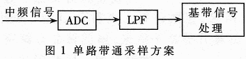 结合各自优势,尽可能抑制了它们的缺点:一方面由于应用了带通采样机制,此方案具有第一种方案效率高、所用器件少的优点,同时又比第一种方案的适用范围广,它可恢复复数形式的基带信号,而单路带通采样方案实现的实信号情况仅为其中的一个特例而已。另一方面,采用数字下变频器,解决了第二种方案使用两路ADCs所遇到的由于ADCs电路参数不一致及双通道幅度、相位失配,使系统性能急剧下降的问题。因此本方案具有一定的工程应用价值,这一点在后面会进一步说明。