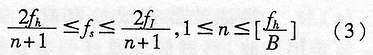 带通采样定理要求采样速率满足下式即可实现无混迭采样[2]: