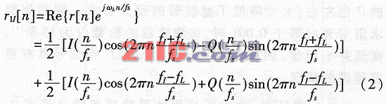 则在发送端经上变频得到的中频复信号为s1(t)=s(t)ejωIt,取其实部调制到射频发送出去。理想情况下,接收机收到的中频信号r(t)=Re{s1(t)}。其中,Re{·)表示取复数的实部。