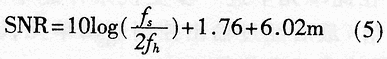 其中,m为ADC分辨率。可见,保持人不变时,增大采样速率和A/D分辨率均可提高数字信号的信噪比。但是信号本身具有一定的信噪比,A/D采样的量化单位比噪声电子更低是没有意义的,因此提高A/D的分辨率是有一定限制的。而fs增加一倍,就会带来3dB的SNR增益,相当于增加了0.5bit的分辨率。设计时需要利用这一点,采用一个最佳的采样速率使信噪比性能较好。