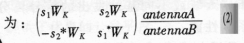 将(2)式的基带信号进行QPSK载波调制,并用复变量表示,得到天线A和天线B上的发射信号分别为: