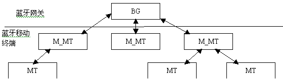 如果目的端位于单位内部的局域网或者Internet,则需要通过蓝牙网关进行蓝牙协议与TCP/IP协议的转换,如果该MT没有IP地址,则由蓝牙网关来提供,其通信方式为MT-BG –MT。如果目的端位于办公网络内部的另一个匹克网,则通过蓝牙网关来建立路由连接,从而完成整个通信过程的漫游.其通信方式为MT-BG-M_MT(为主移动终端)-MT。采用蓝牙技术也可使办公室的每个数据终端互相连通。例如多台终端共用1 台打印机,可按照一定的算法登陆打印机的等待队列,依次执行。