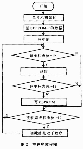 片内EEPROM操作子程序包括对EEPROM的读操作和写操作。其中读操作是在主程序初始化后进行的,写操作是在掉电时由模拟比较器产生的标志被主程序查询到而进入的。这一部分内容虽然不多,但对于数据的保存和恢复非常重要,因为系统一旦开始工作后,它所记录的数据是绝对不能丢失的。
