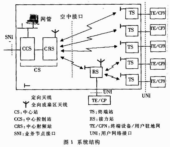 中心站位于服务区中心,逻辑上可以分两个部分:中心控制站(CCS)和中心射频站(CRS)。中心控制站是业务汇聚部分,并提供到网络侧的接口;网络侧的接口一般有STM-1、10/100Base-T、E3/T3、n×E1等接口。中心站覆盖的服务区一般分为多个扇区,每个CRS对应一个扇区,每个扇区可以对一个或多个远端站提供服务。CCS将来自各个扇区不同θ用户的上行业务量进行汇聚复用,提交不同的业务节点;将来自不同业务节点的下行业务量分送各个扇区。