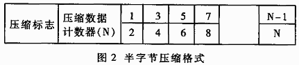 由图2可知,实现半字节压缩算法需要解决两上问题:首先是压缩对象的计数;其次是如何把两个数字的低位合并到一个字节中。后一个问题只要规定好压缩后的字节中奇数号字符的四位编码与偶数号字符的四位编码的存放次序即可,程序的实现非常简单,在此我们规定编号是奇数的字符放在高四位,编号为偶数的字符的编码放在低四位。假设压缩前的数据流中的前四个字节分别为“1、2、3、4”,则压缩后的数据格式如图3所示。