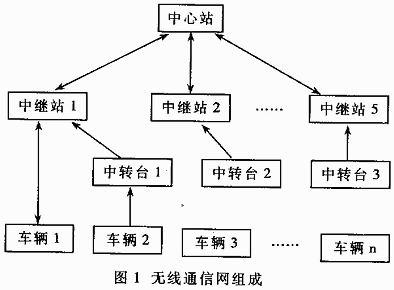 系统无线通信网由中心站、中继站、中转台和车载设备构成,如图1所示。
