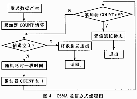通信控制器以CSMA方式发送数据的程序框图如图4所示。