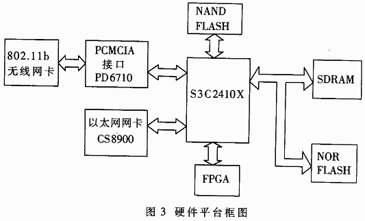 利用S3C2410X出色的内核性能和丰富的外部接口构造一个嵌入式系统平台,用于嵌人式无线宽带通信。图3是该系统的硬件框图。