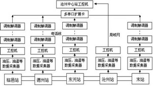 输油管道特别是长输管道,距离一般都较长,各站之间的距离也较长,以临邑-沧州-河间长输管线为例,管道全长260公里,总共五个站,两站之间的距离在40~50公里之间。由于沧州站与沧州中心站在一起,两台计算机的距离相差不过几百米,采用网卡互联形成局域网,使用TCP/IP协议进行数据实时传输,其余各站与沧州中心站采用输油公司内部已有的微波通讯设施,使用高性能的调制解调器进行数据传输。各子站的压力、温度等数据除保存在本站的计算机上外,还实时传输到中心站。中心站实时监测各站运行状况,并将数据存档,供管理人员分析。监测系统很重要的特点是要综合各子站的数据来判断是否有泄漏发生,特别是必须有相应两站的数据才能定位泄漏点。