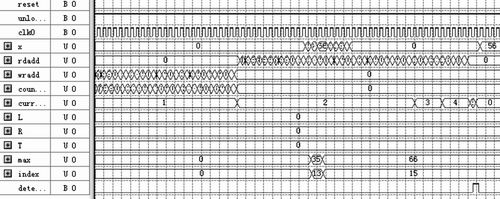 图 4 QUARTUS II环境下恒虚警处理单元时序仿真波形