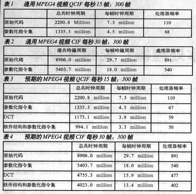 采用参数化指令处理,开发者可以用基本的处理器配置评估代码,发现瓶颈。常见的瓶颈是缺少高速缓冲。用可配置处理器,开发者能够回退和重新配置处理器,提供更多的指令或数据缓冲,或从2路到3路到4路组合指令。另一类瓶颈是过窄的数据通道限制了一块或大量像素块的编码效率。采用可配置处理器,可以拓宽数据通道,一次对整行像素进行处理,从而节省处理器周期。可以创建特定的指令,以便充分利用这个更宽的数据通道。以MPEG4操作为例,能够定制绝对差值之和(SAD)的计算,这样16个独立的8位像素求和可以用一个所有16像素值的128位同时求和指令替代。