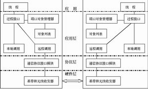 面向对象的蓝牙通信控制器主要由3层组成:硬件层,协议层,应用层。硬件层主要完成一些依赖于硬件的功能,包括无线信号收发、编解码等功能。端口对象通信机制将系统的硬件细节与上层的核心部分相隔离,当系统底层的硬件发生变化的时候,只需更改底层的硬件驱动,增强了系统的可移植性。协议层遵循蓝牙核心协议和蓝牙分布式智能家居网络所对应的协议子集(包括OBEX等)参考模型标准。应用层是实现分布式的关键。基于端口对象的通信机制在该层实现。