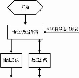 IME6400的Host接口为地址和数据分开的非复用总线控制方式,SAA7146的DEBI接口为数据和地址复用的总线控制方式。这里通过DEBI的ALE信号来分离复用总线上的地址和数据总线,利用ALE的边沿触发信号将地址锁存到地址寄存器当中。