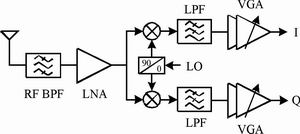 超外差体系结构被认为是最可靠的接收机拓扑结构,因为通过适当地选择中频和滤波器可以获得极佳的选择性和灵敏度。由于有多个变频级,直流偏差和本振泄漏问题不会影响接收机的性能。但镜像干扰抑制滤波器和信道选择滤波器均为高Q值带通滤波器,它们只能在片外实现,从而增大了接收机的成本和尺寸。目前,要利用集成电路制造工艺将这两个滤波器与其它射频电路一起集成在一块芯片上存在很大的困难。因此,超外差接收机的单片集成因受到工艺技术方面的限制而难以实现。