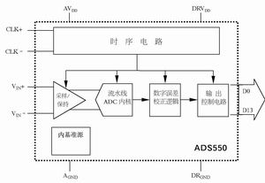 ADS5500接口简单,使用方便、灵活,14位采样精度,同时又有很高的转换速度。在大多数需要高速数据采集和高精度测量的应用场合中,该芯片具有很强的实用性。