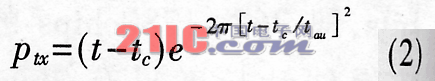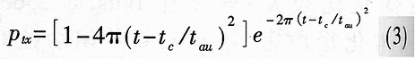 传统的UWB系统使用一种被称为“单周期(monocycle)脉形”的脉冲。一般情况下,通过随道二极管或者水银开关产生。在计算机仿真中用高斯脉冲来近似代替它。由于天线对脉冲的影响不同,所以可以假设发送脉冲为: