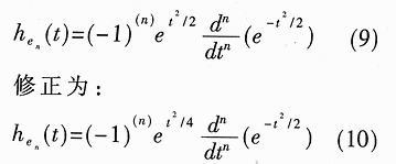 为了追求更高效率的信息传输,近来人们提出了一种新型脉冲调制方式——脉形调制PSM(Pulse Shape Modulation)。PSM就是对脉冲的形状进行调制从而实现信息的载荷,因此脉冲形状的选择是十分重要的。它的提出得益于人们对hermite多项式的研究。由于hermite多项式的数学表达式与高斯单脉冲很接近,而且随着阶数的变化,波形的持续时间不会有很大的变化,因此人们便想到了用hermite多项式数的变化产生形状各异的脉冲,实现多元化的调制。为了寻求正交的波形,需对hermite多项式进行修正,即: