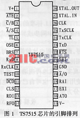 图1所示是TS7515芯片采用DIP28封装的引脚排列,其引脚功能如下: