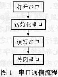 用Windows API函数进行串口通信的编程流程如图1所示。其中打开串口是确定串口号与串口的打开方式;初始化串口用于配置通讯的波特率、每字节位数、校验位、停止位和读写超时等;读写串口用于向串口进行发送数据和从串口接收数据;关闭串口用于将串口关闭并释放串口资源(Windows系统下串口是系统资源)。