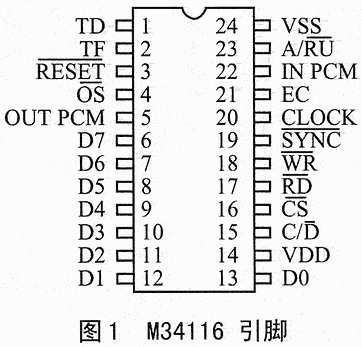 M34116为24引脚双列直插封装,引脚如图1所示。