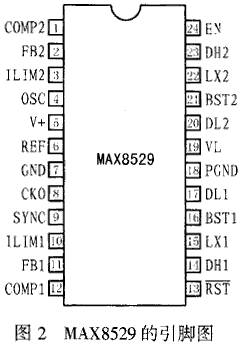 MAX8529的引脚排列如图2所示,各引脚的功能如下: