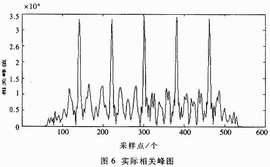 可以比较出这两种图形所显示的相关峰的幅度与相对位置都基本一致。这就说明用FPGA对数据进行处理的结果和理论方法的处理结果是吻合的,这也就验证了FPAG设计的正确性。由于FPGA所进行的只是初相关,所以图7显示的相关峰幅度不大,数据送到DSP后要进行二次相关等处理,然后用于信号的捕获和同步。