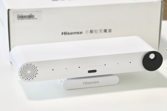 海信K3G小聚社交魔盒在机身的设计上还是不错的,区别于市场上固有印象的电视盒子设计,采用了一个长条的设计,两边再以圆形作为弧度包边,而且整机都是中轴线对称来展开分布的,比如前置扬声器与摄像头,红外遥控区域与两侧麦克风,状态灯形成的对称,在观感上还是挺舒服的!