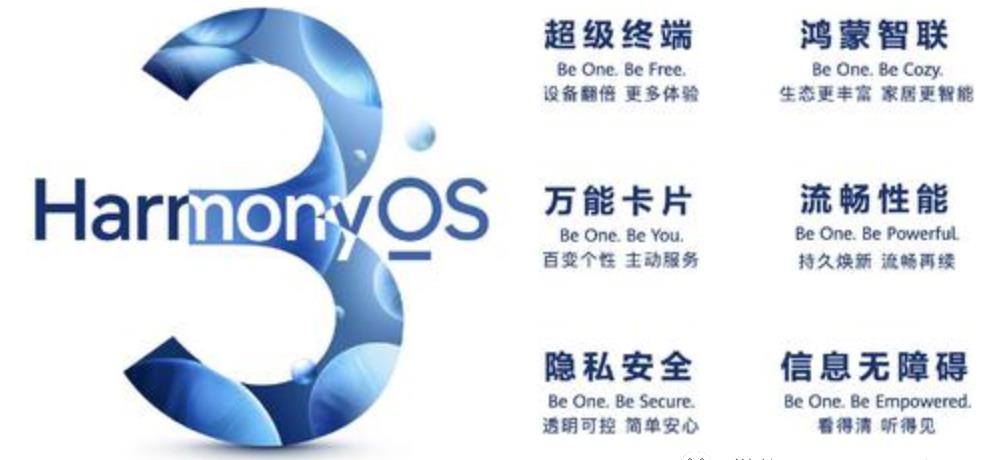 HarmonyOS 3升级主要围绕超级终端、鸿蒙智联、万能卡片、流畅性能、隐私安全和信息无障碍六大方面。