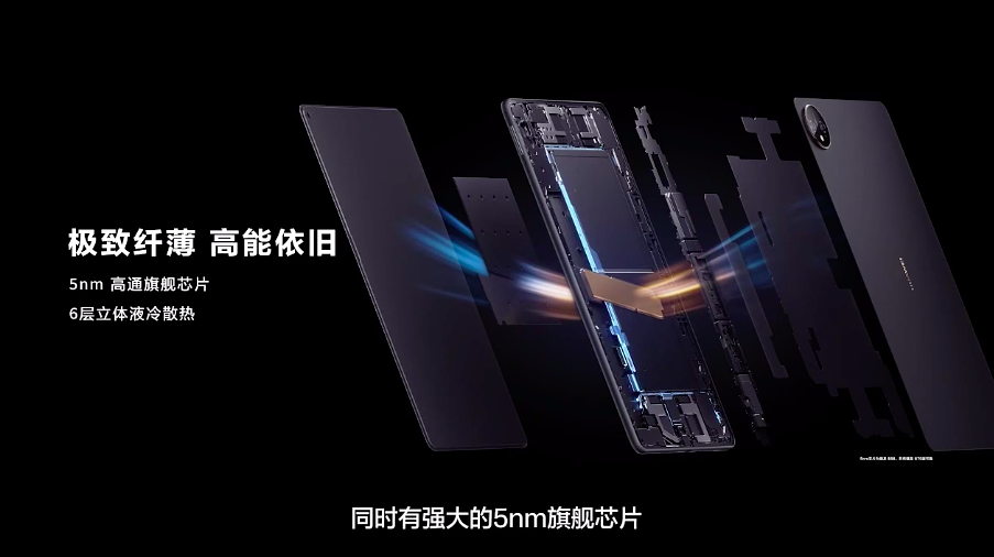 华为MatePad Pro采用5nm高通旗舰芯片,搭配6层立体液冷散热,余承东称它为业界Wi-FI最快的平板。
