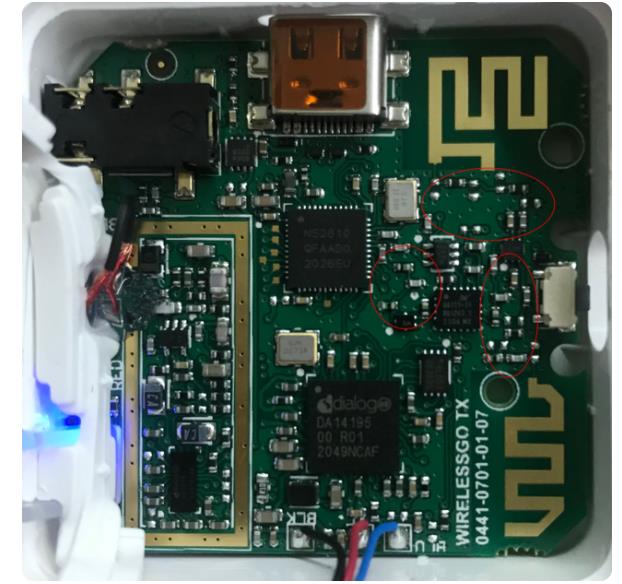备注:椭圆形标记为RF线路走线,个人认为不太好,应该走线要尽量的短.
