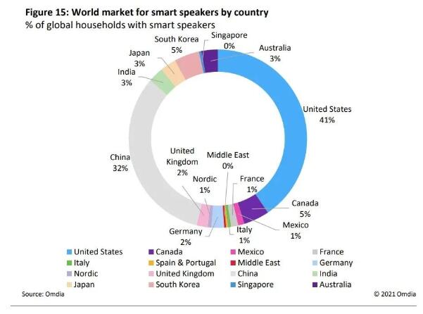 根据 Omdia 在 2020 年中对 33 个国家和地区的 34,205 名受访者进行的调查,16.7% 的受访者表示他们拥有一个智能音箱。考虑到受访者和总家庭的加权平均数,这相当于 22.8% 的家庭拥有一个智能音箱。使用同样的调查方法显示,3.4% 的家庭拥有两个音箱,0.9% 的家庭拥有三个智能音箱。