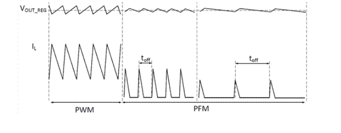· 采用TI专利的SOO(平滑开通/关断时间控制)技术,支持轻载时PWM模式到PFM模式的无缝过渡,实现全负载下无电压漂移,满足严苛的输出电压精度要求,并能通过延长关断时间toff来大幅提升轻载效率,如图3所示。