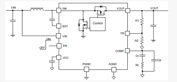- 芯片采用小尺寸的QFN封装,仅为3mm×2.5mm,功率密度极高,如图2所示。