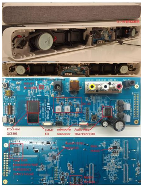 图示3-大联大诠鼎基于高通QCS400 SoC的2.1声道智能音响参考设计方案开发板及实物图