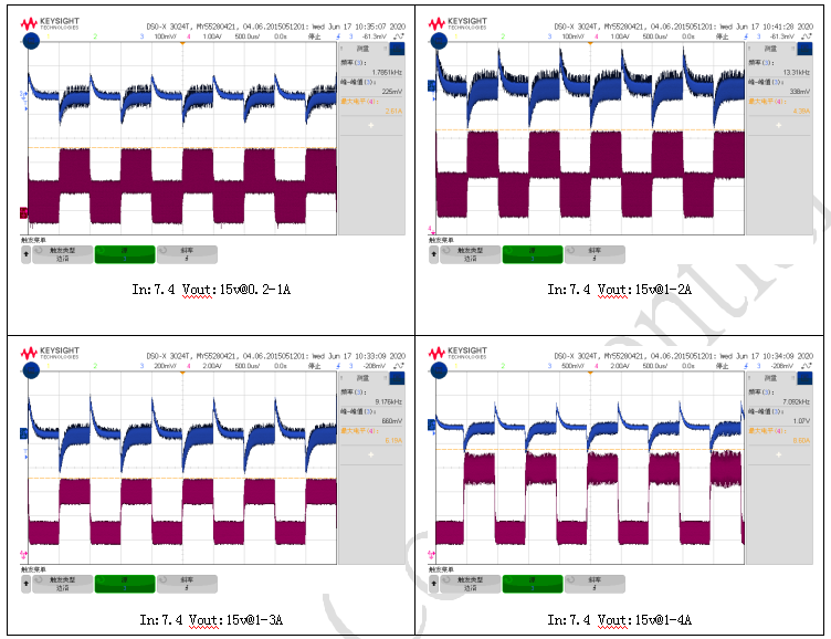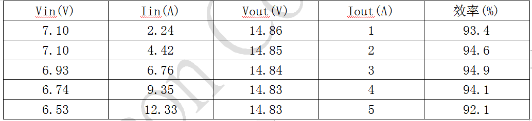 本方案针对两节锂电池输出15V电压,支持15V电压、4Ω BTL负载条件下功率为2x30W(TPA3118D2)的功放。以下测试数据以15V固定电压输出得到,包络部分未参与。后面会做出计算范例。
