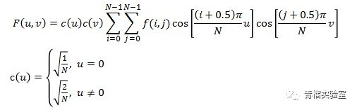 事情还远没结束。虽然通过预测公式降低了众多像素存储的编码信息量,但这还不是压缩。于是引入了各种变换,如离散余弦变换DCT、小波变换等等。学术上,其目的是将图像进行从空域到频域的变化,通过这些所谓的变换滤掉高频信息,因为人眼对高频信息不敏感,滤掉一些也无所谓。经典的DCT公式长这样: