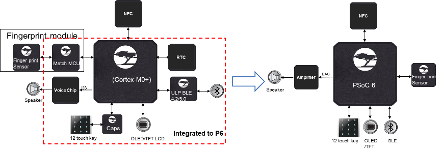 Cypress PSoC 6平台已经并入Infineon Technologies的Cypress今年4月份曾对媒体表示,国内排名TOP 20的智能门锁厂商,一些新开发的方案很快将会使用Cypress PSoC 6平台。 PSoC 6系列产品包括基础款PSoC 62、带BLE无线连接的PSoC 63、安全升级的PSoC 64。产品的最大特点是:高集成度、高性能、低功耗,另有广泛的生态支持,已经得到小米以及阿里天猫的智能家居生态双重认证。传统方案中指纹识别、语音控制、电容触摸、屏幕显示、无线连接、RTC等需要3-4颗芯片才能实现的功能,如今全部整合到PSoC 6中,成本降低了30%-40%。在指纹识别速度上,PSoC 6可以做到200ms以内,最多可以支持100组指纹。在深度睡眠模式(电容触摸唤醒、BLE广播)下,PSoC 6的功耗低至35uA。另外,由于支持BLE和BLE Mesh连接,在保证数据连接的同时,还能最大限度降低系统的功耗。由于PSoC 6组件为即插即用方式,能将产品的开发时间从大约一年缩短至最快三个月。