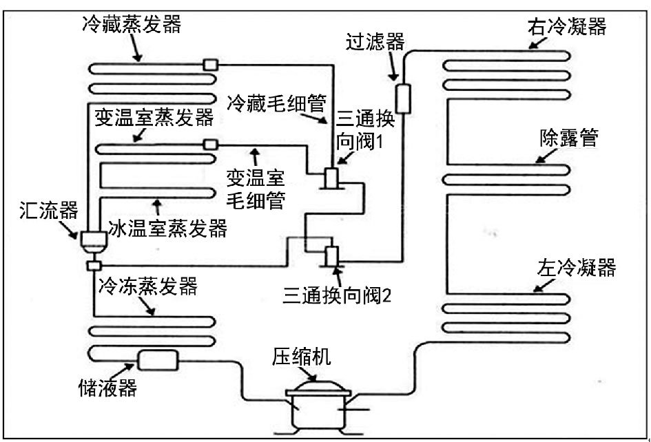 内部结构如图 1。冰箱工作原理如图 2 所示。